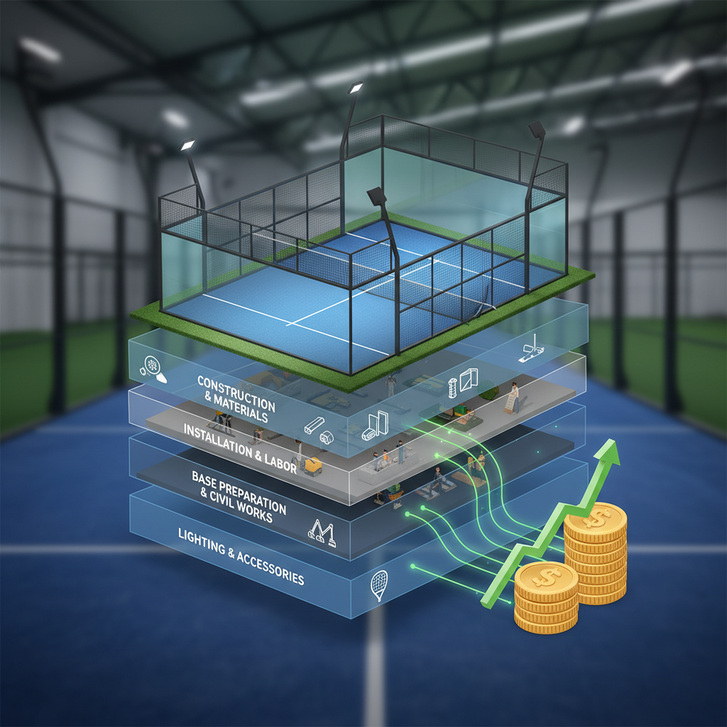 Dalam membangun lapangan padel, pemahaman tentang harga 1 set padel court sangat penting untuk merencanakan anggaran secara efektif. Pada umumnya, harga ini mencakup beberapa elemen penting yang harus dipertimbangkan. Berikut adalah rincian komponen yang biasanya diperlukan: